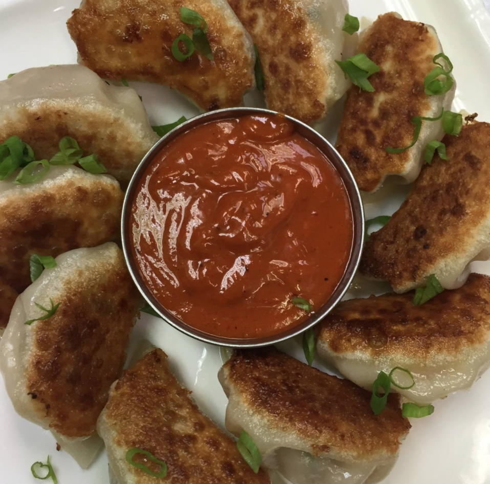 Half steam and half pan fried dumplings.