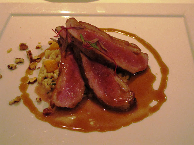 This was one of the best duck breasts I've ever had as far as the seasoning and tenderness of the meat goes. I would have preferred the skin to be a little crispier and the fat to have been rendered a bit more, but that may be a trade-off