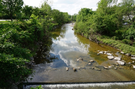 Four Mile Run is a 9.4-mile-long (15.1 km)[1] stream in northern Virginia that starts near Interstate 66, at Gordon Avenue in Fairfax County and proceeds southeast through Falls Church to Arlington County in the U.S. state ofVirginia. Most of the stretch is parkland and is paralleled by two paved non-motorized transport and recreational trails, the Washington & Old Dominion Railroad Trail and the Four Mile Run Trail.