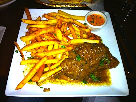 Stewed lamb shank marinated overnight in a saffron - ginger - cinnamon sauce, served with caramalized dried apricots and couscous