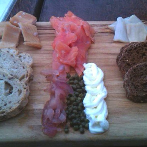 Salmon, Heron, Pickled Red Onions, Capers, Sour Cream and Rye Bread
